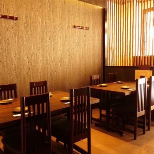 1席4名様までご利用いただけるテーブル席は、ご家族やご友人、同僚の方とお楽しみいただけるお席となっております◎暖色系のライトにモダンな雰囲気の店内は、時間を忘れさせてくれるような、どこか自然な雰囲気を感じさせてくれます♪お落ち着いた空間で召し上がる美味しいお料理、ドリンクを心ゆくまでご堪能ください!!